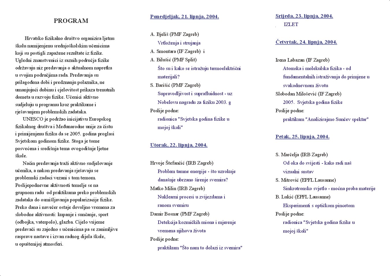 Vela Luka, Korčula 20.6.-26.6.2004. Ususret Svjetskoj godini fizike